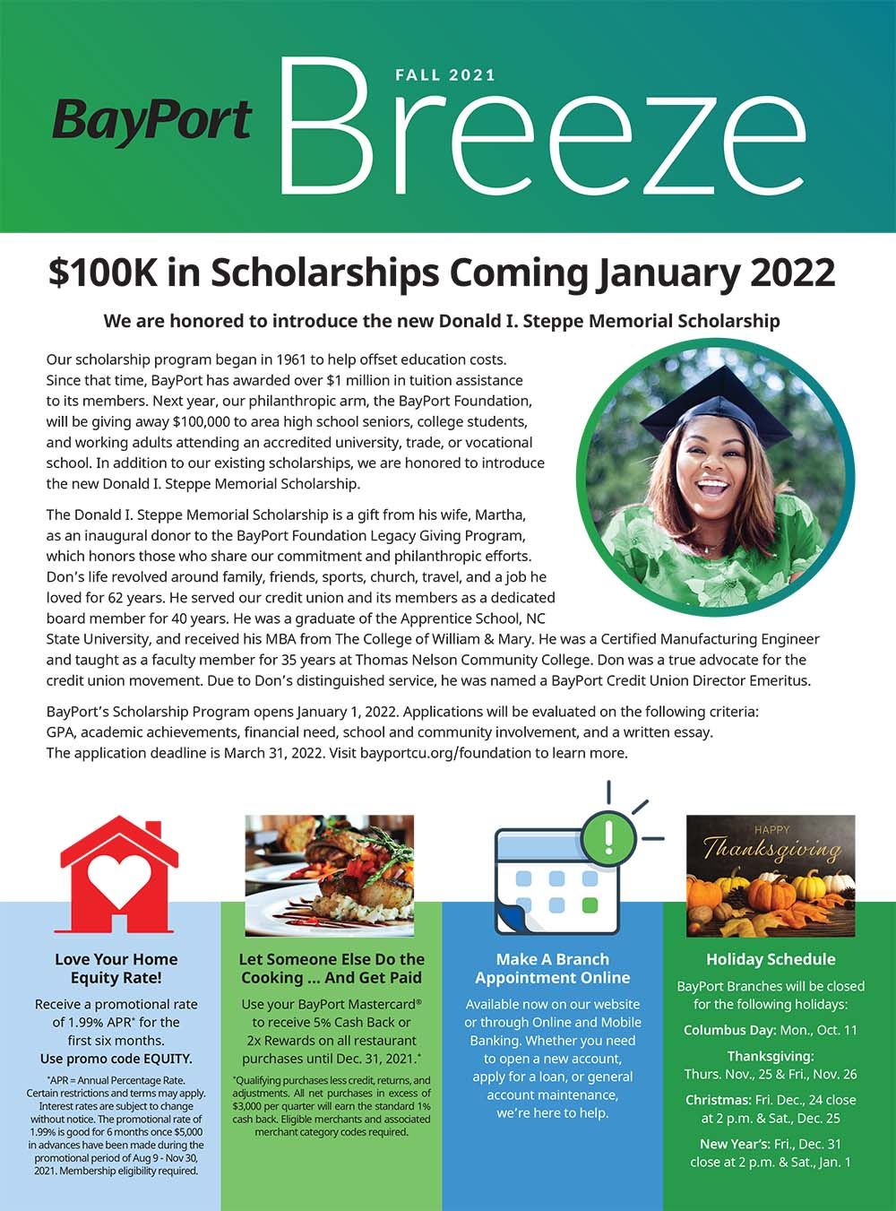 Your quarterly newsletter has helpful tips, timely articles, and special offers. Stay informed on all that’s happening at BayPort....